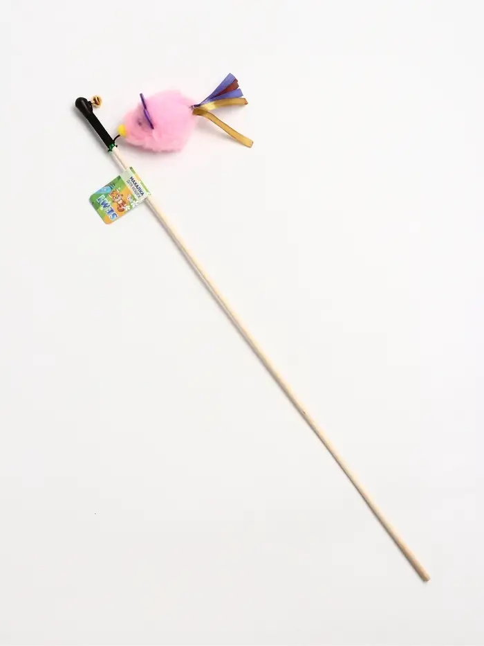 Дразнилка - удочка "Мышка" с колокольчиком, на деревянной палочке, розовая