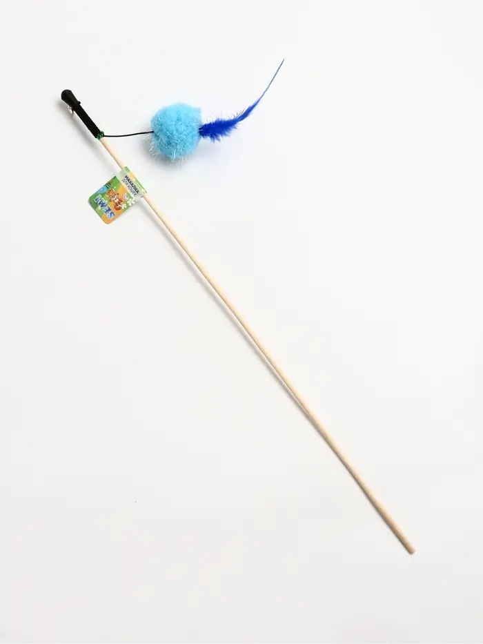 Дразнилка - удочка "Мячик с перьями" на деревянной палочке, микс цветов
