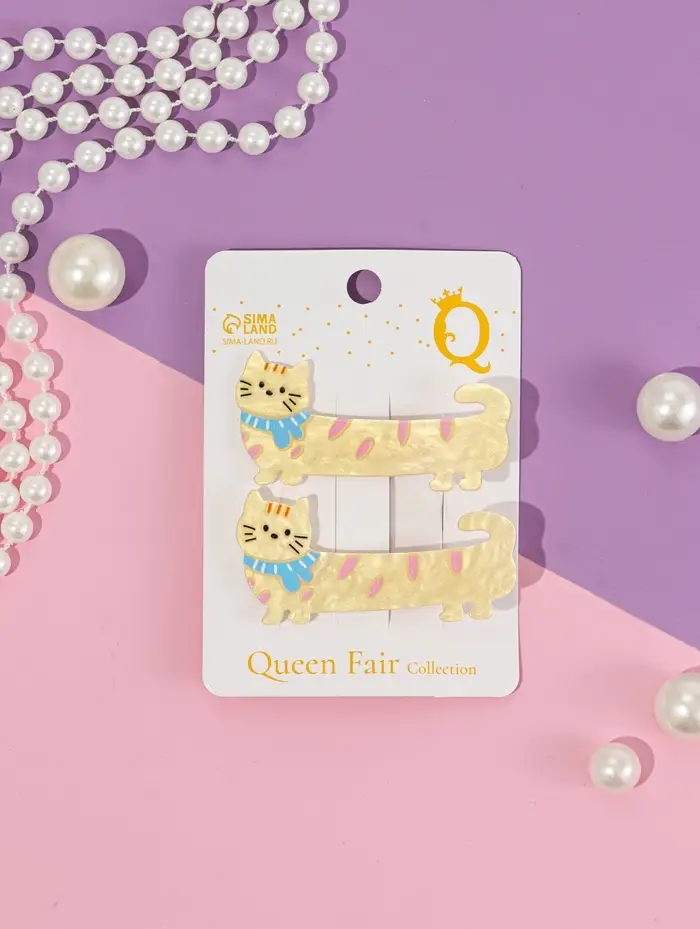Зажим для волос "Мультизаврик" (набор 2 шт) кот в шарфе, 6,5 см
