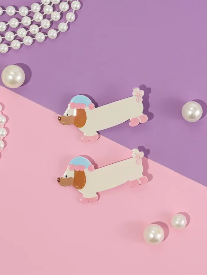 Зажим для волос "Мультизаврик" (набор 2 шт) собака в шапке, 7 см