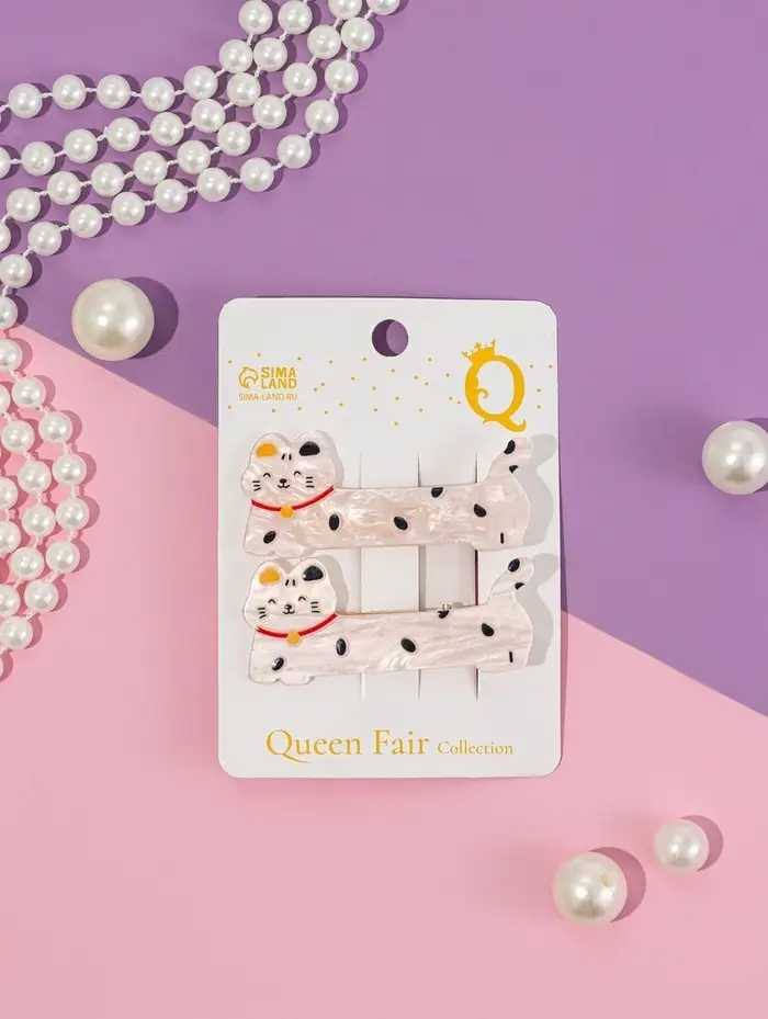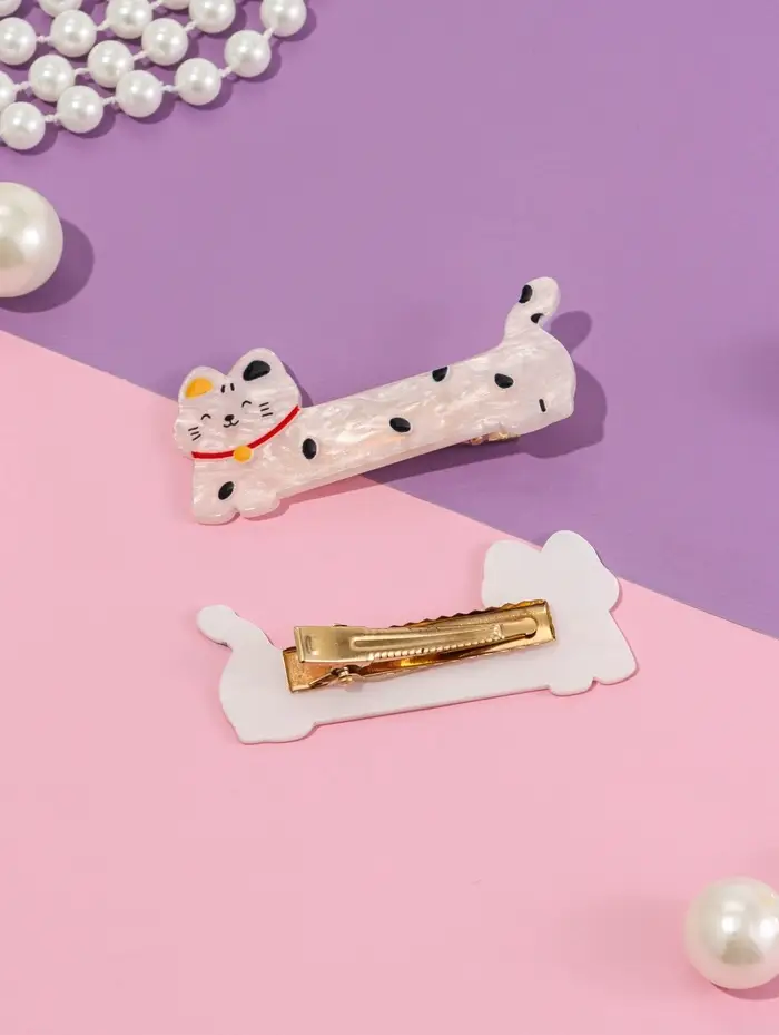 Зажим для волос "Мультизаврик" (набор 2 шт) котик, 6,5 см