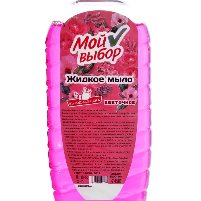 Жидкое мыло "Мой Выбор" цветочное - это отличный выбор для тех, кто ценит чистоту и заботится о своей коже. Оно поможет поддерживать руки в идеальном состоянии, обеспечивая комфорт и уход.