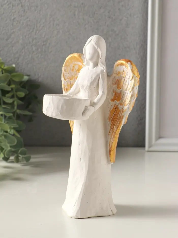 Этот белый гипсовый подсвечник для одной свечи станет элегантным акцентом в интерьере и создаст особое настроение. Его классическая форма и универсальная тематика делают его уместным в любой сезон — от романтического февраля до светлой Пасхи. Ангельский силуэт привносит в пространство ощущение спокойствия и чистоты.