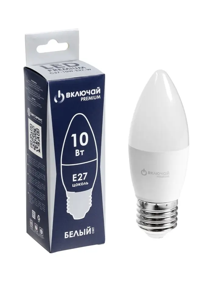 Лампа светодиодная Включай, С37, 10 Вт, E27, 950 Лм, 4000K, IP20, свечение нейтральное белое, матово