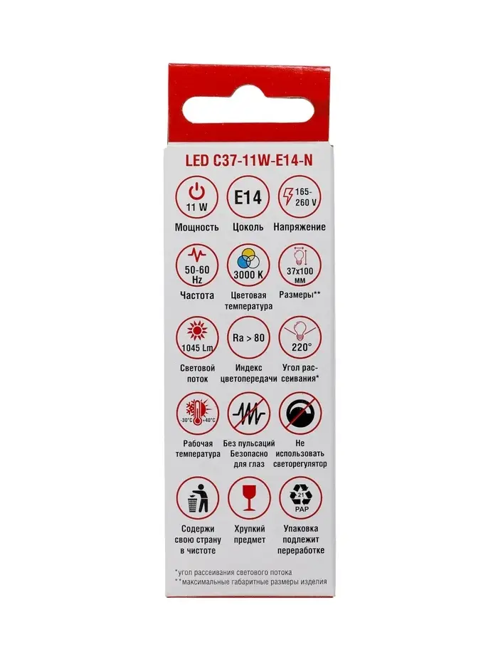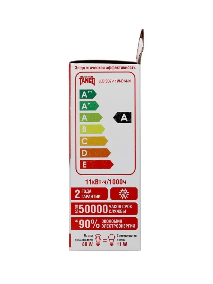 Лампа светодиодная TANGO, С37, 11 Вт, E14, 1045 Лм, 3000K, IP20, свечение тёплое белое, матовое стек