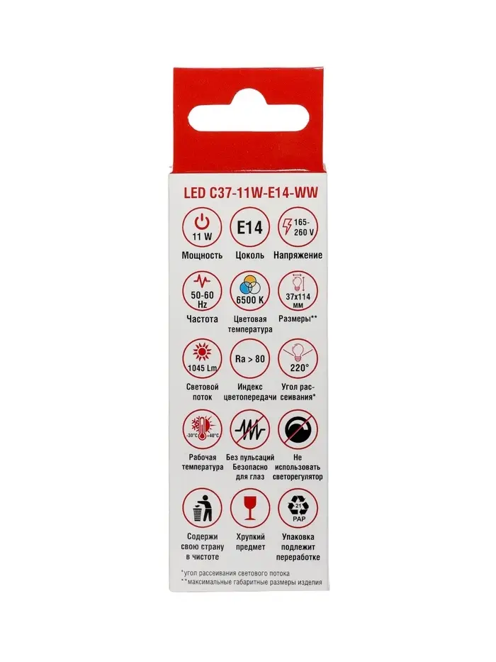 Лампа светодиодная TANGO, С37, 11 Вт, E14, 1045 Лм, 6500K, IP20, свечение холодное белое, матовое ст