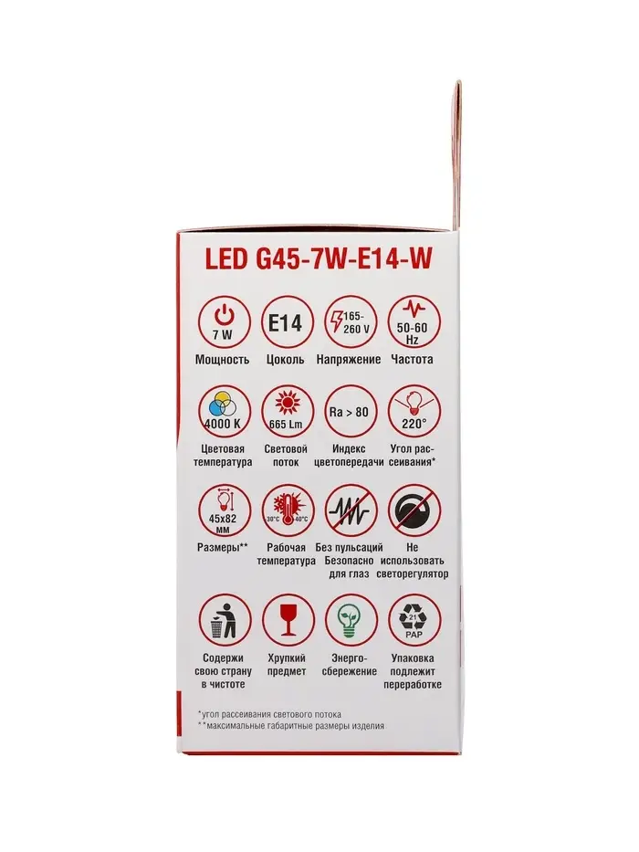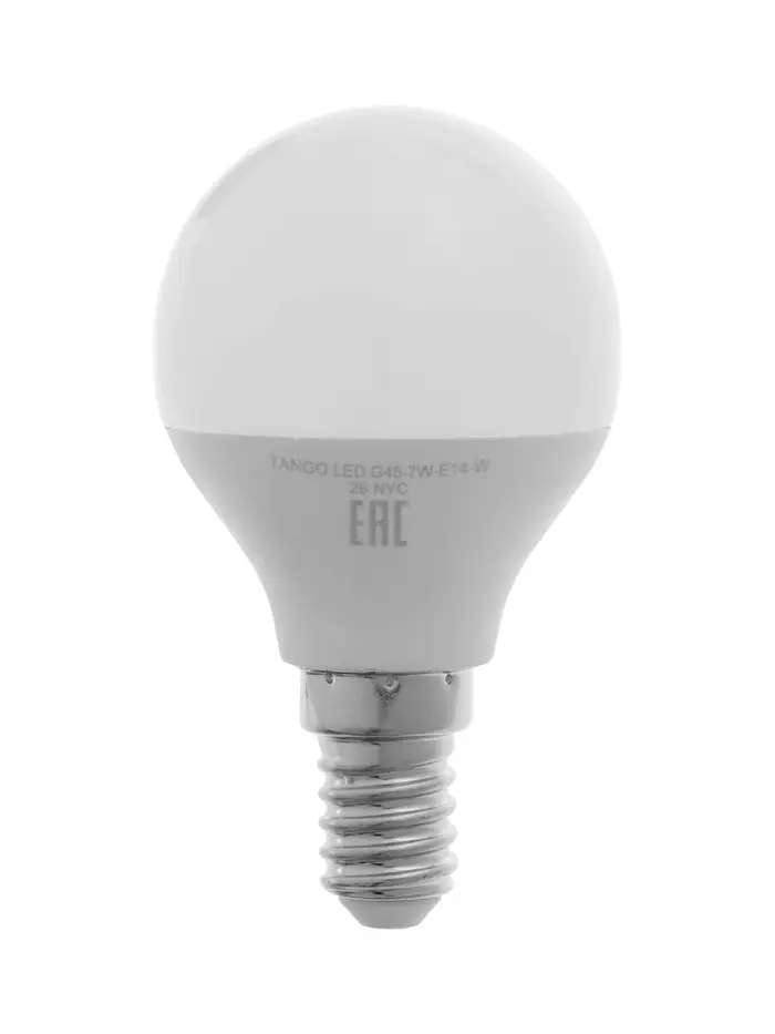 Лампа светодиодная TANGO, G45, 7 Вт, E14, 665 Лм, 4000K, IP20, свечение нейтральное белое, матовое