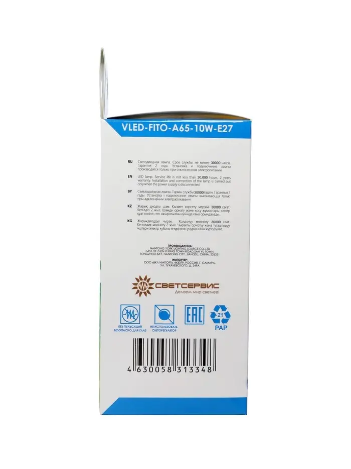 Фитолампа для растений VKL electric, A65, 10 Вт, E27, IP20, красно-синий спектр