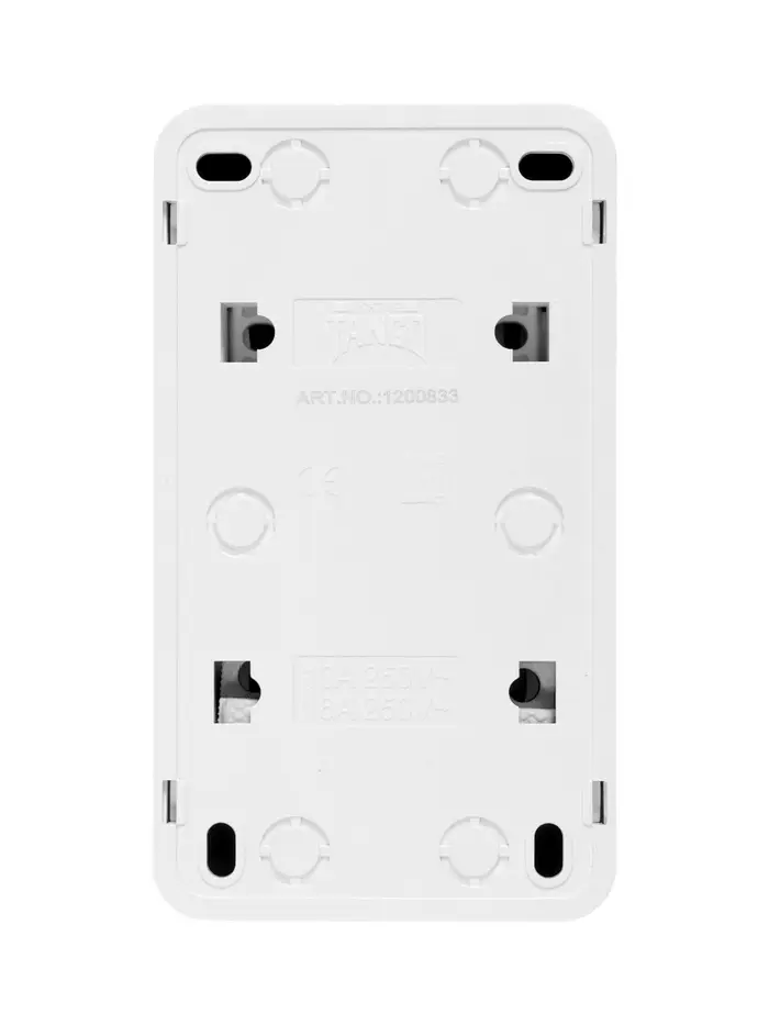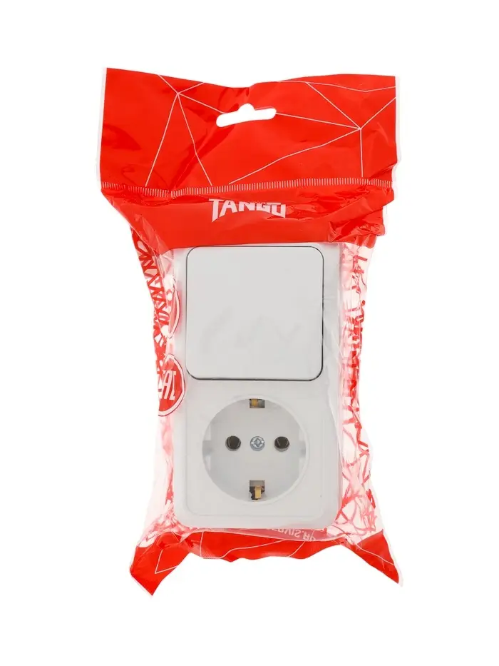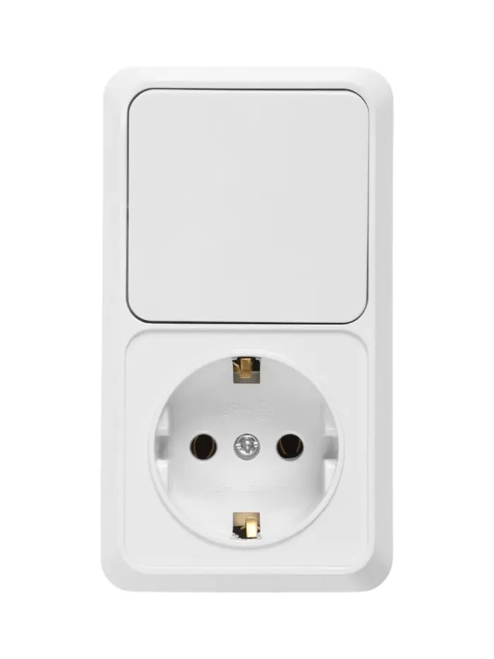 Выключатель с розеткой вертикальный TANGO, 16 А, 1 клавиша + розетка, IP 20, открытой проводки с заз