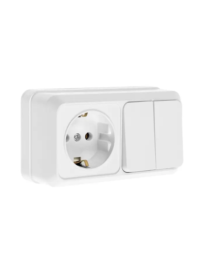 Выключатель с розеткой горизонтальный TANGO, 16 А, 2 клавиши + розетка, IP 20, открытой проводки с з