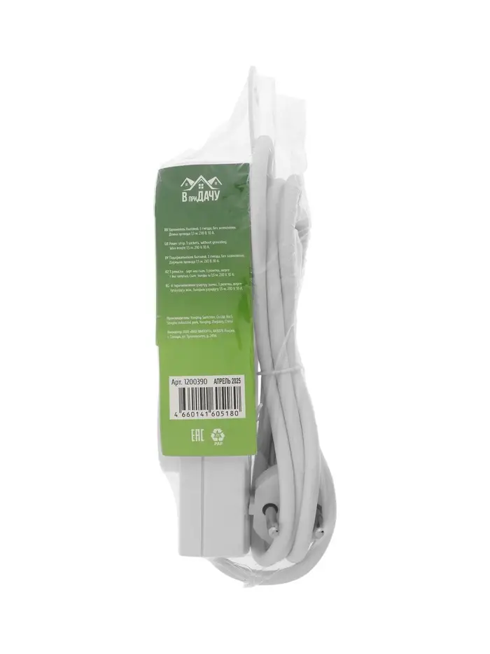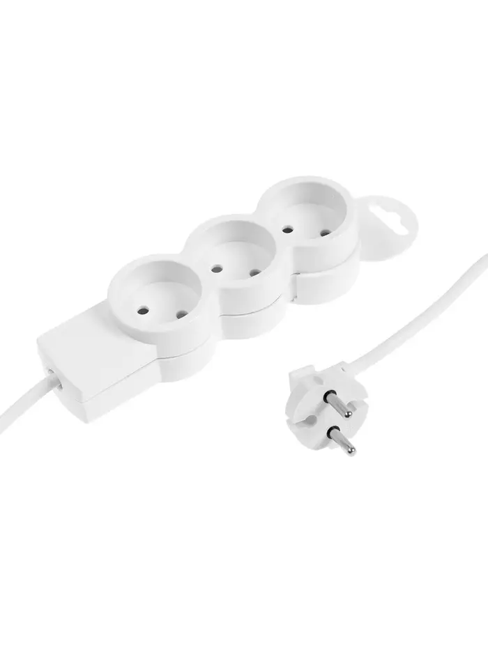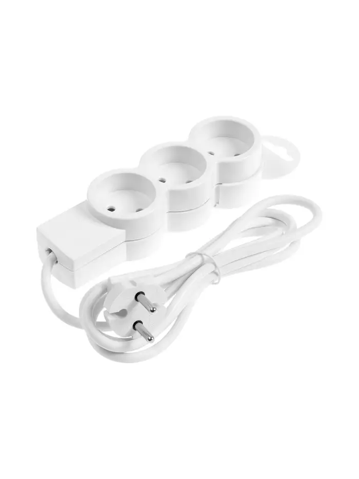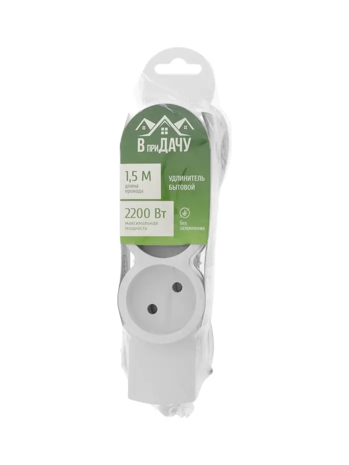 Удлинитель бытовой В приДАЧУ, 3 гнезда, 1,5м, 10 А, 2200 вт, ПВС 2×0,75мм2, без заземления, белый 10