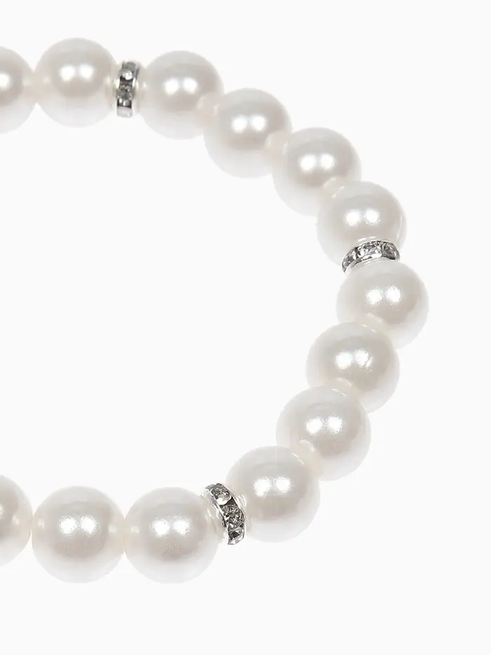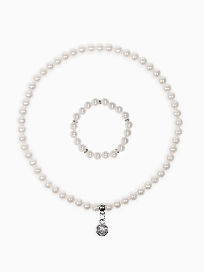 Набор детский «Выбражулька» 2 предмета: бусы, браслет d=6 см. жемчуг, белый в серебре