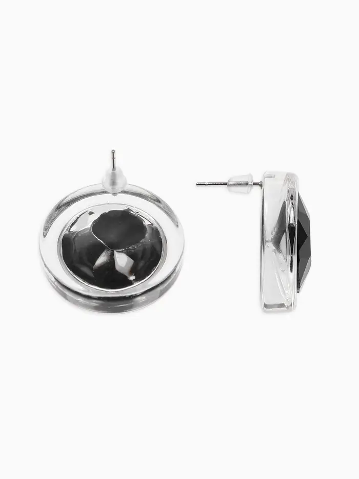 Серьги "Кристалл" круг, цвет прозрачно-чёрный