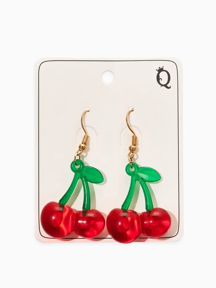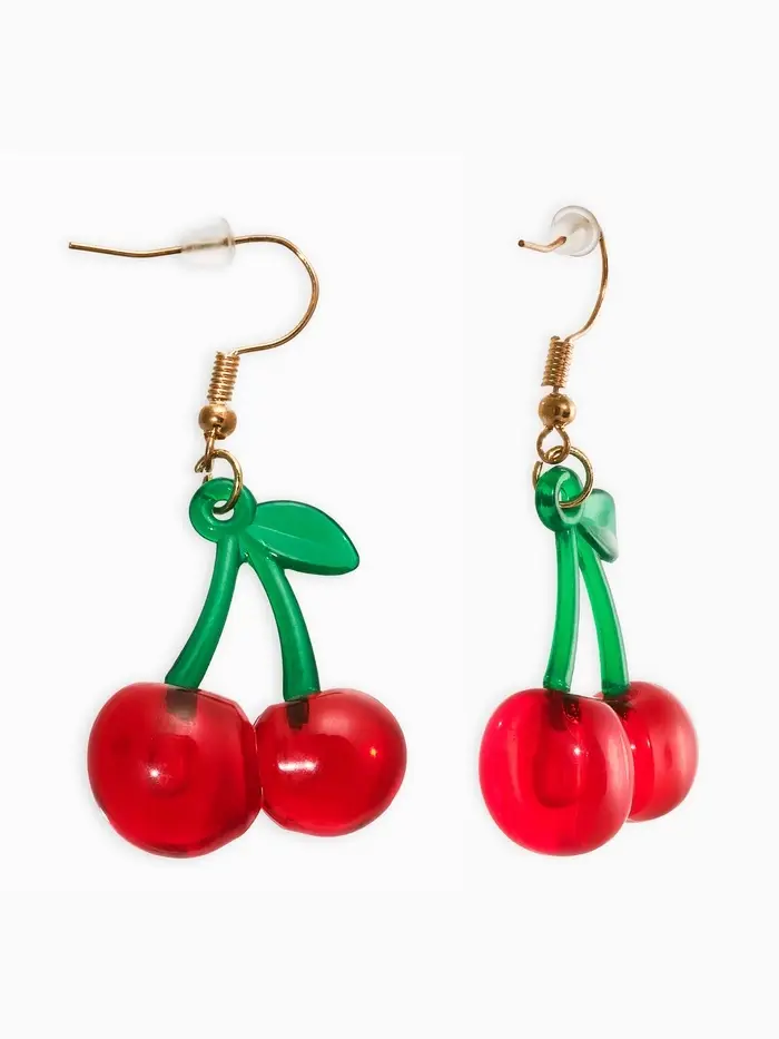 Серьги пластик "Вишня", на петельке. цветные в золоте