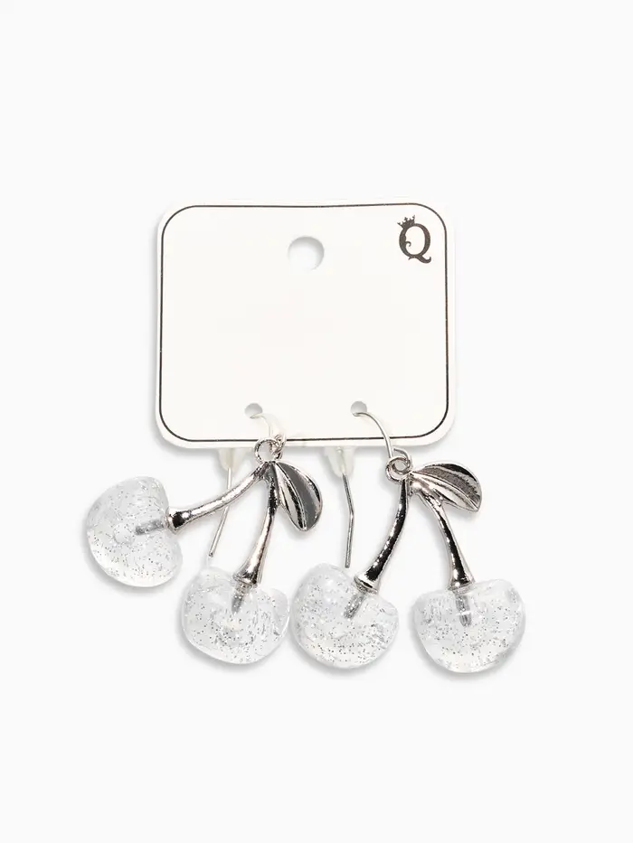 Серьги "Вишенка" блёстка, цвет прозрачный белый в серебре