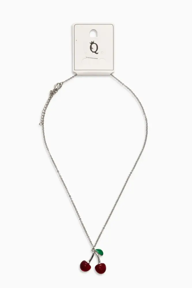 Кулон на цепочке "Черешня", цвет бордово-зелёный в серебре 40+удл