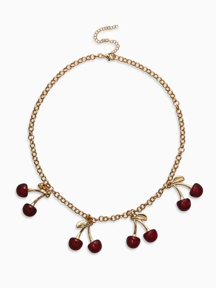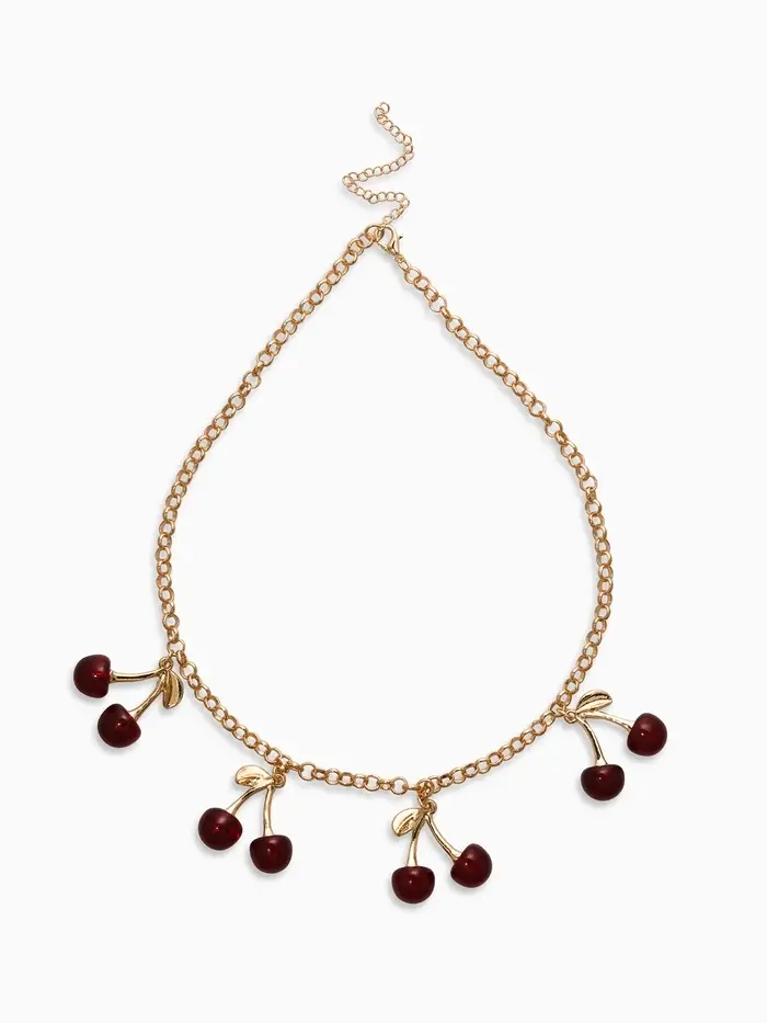 Цепь с подвесками "Вишня", 40+удл, цвет бордовый в золоте