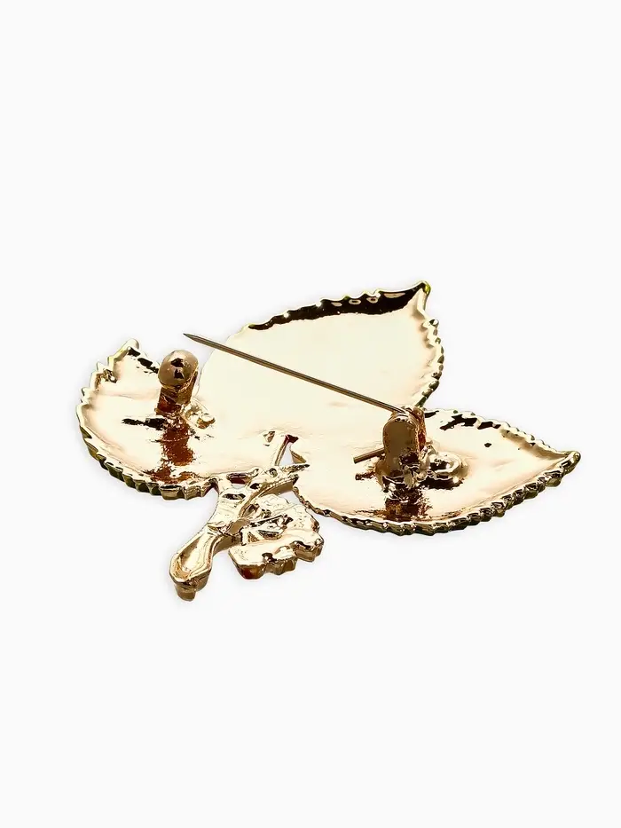 Брошь "Листья Ясеня", цвет зелёно-коричневый в золоте