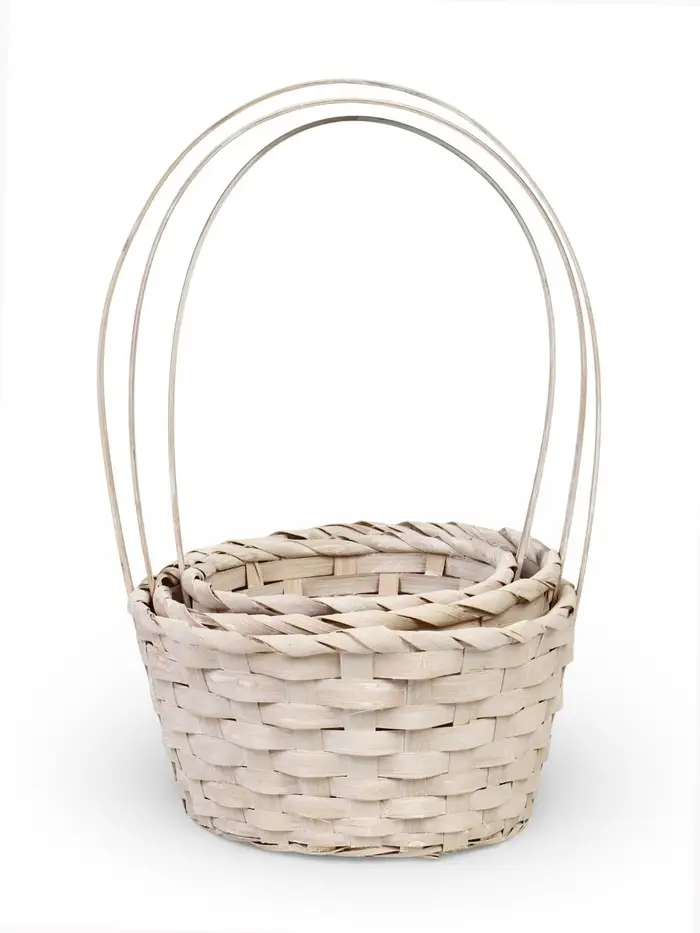 Набор корзин 3 шт 21х21х10 18х18х10 16х16х10 см ручка h=26/24/22см белый