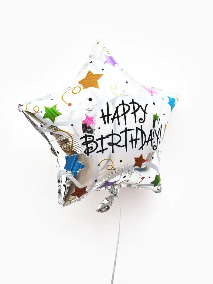 Воздушные шары фольгированные 18" звезда "С днем рождения, металлик" набор 5 штук