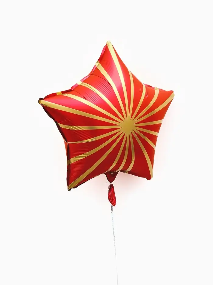 Воздушный шар фольгированный 18" звезда "Грани" цвет красный сатин, набор 5 штук