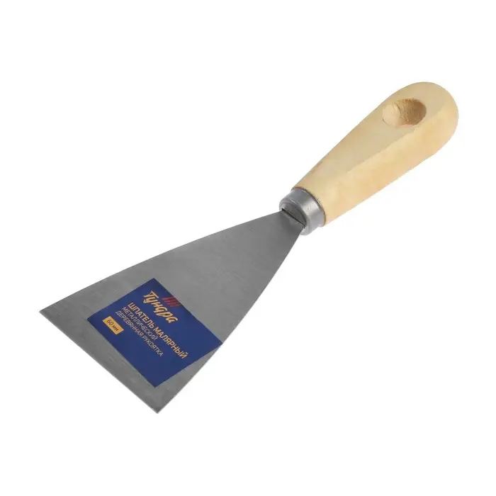 Шпатель малярный ТУНДРА, металлический, деревянная рукоятка, 60 мм
