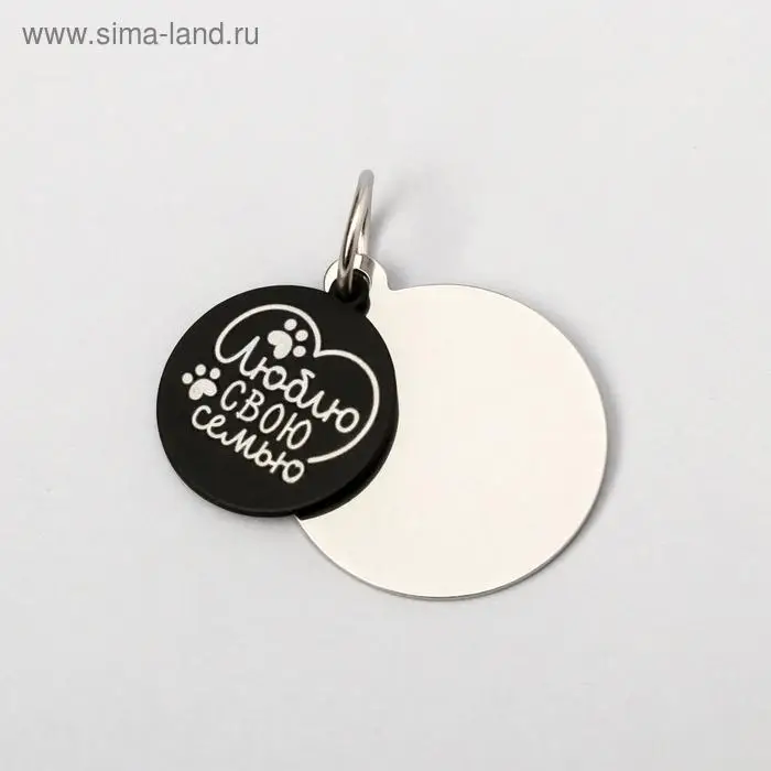 Адресник под гравировку + подвес «Люблю свою семью», верхняя часть d=2,2 см, нижняя d=3 см, цвет чёрный