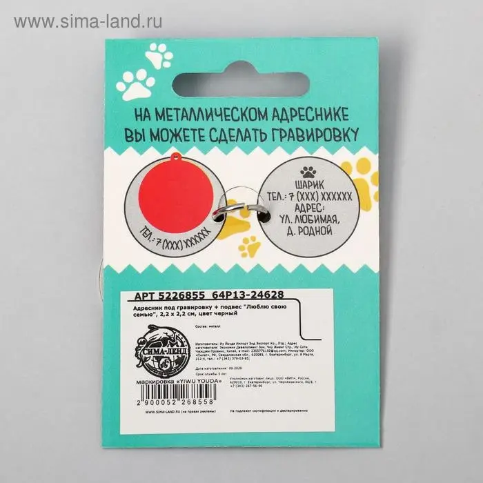 Аксессуар позволит вернуть вашего маленького друга домой, если он потеряется. Просто отдайте адресник под гравировку для переноса данных (кличка питомца, номер телефона или адрес) — вся важная информация будет на нём.