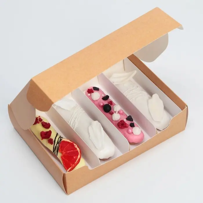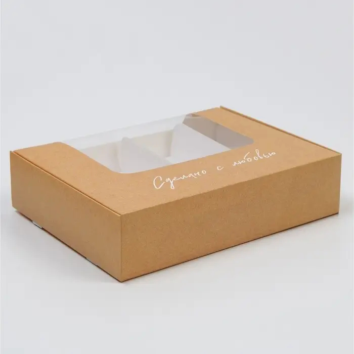 Коробка для эклеров, кондитерская упаковка, 4 вкладыша, «Сделано с любовью», 20×15×5 см