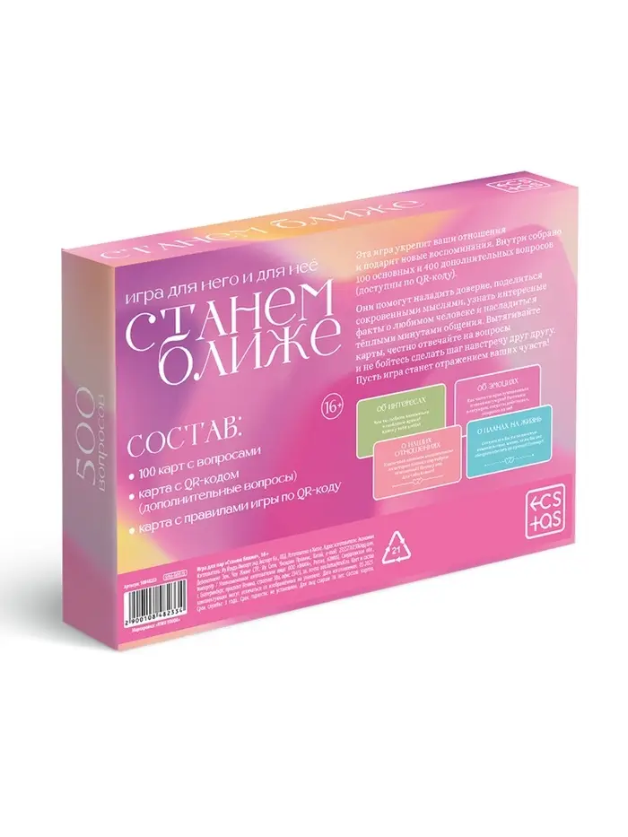 Игра для пар «Ближе», 100 карт, 16+
