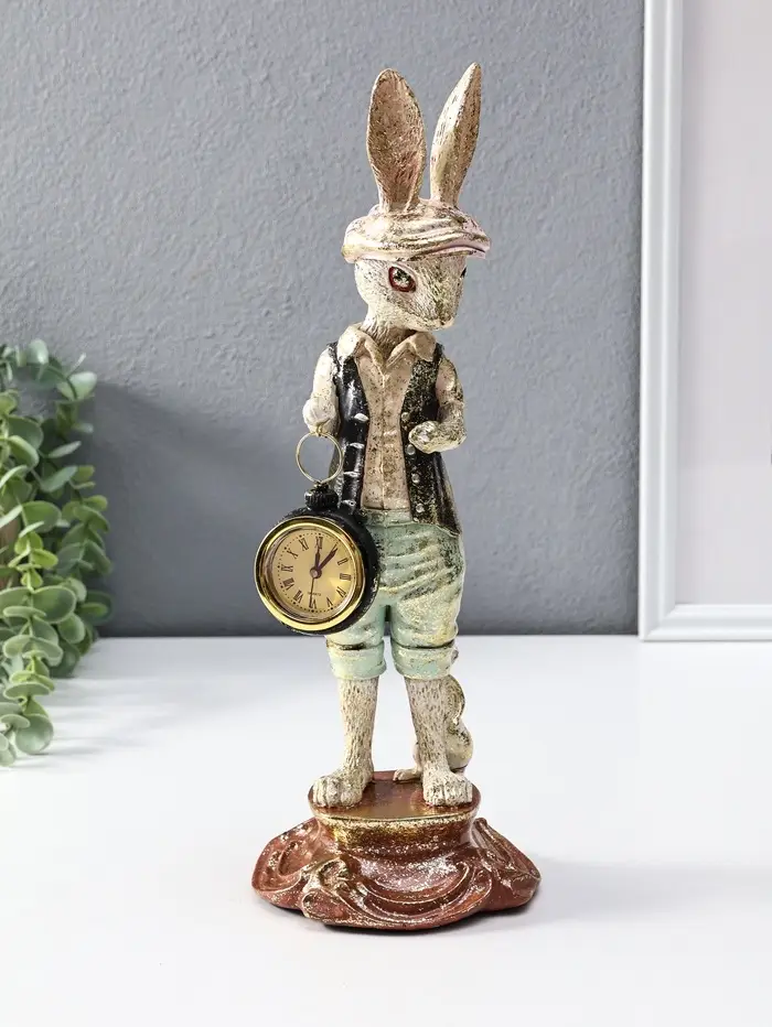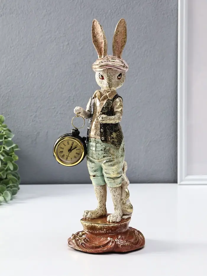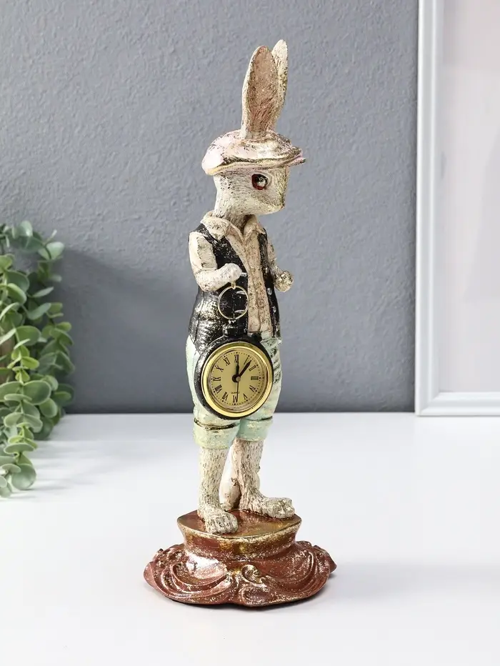 Сувенир полистоун "Зайчик в кепке с часами" 12,5х12,5х35 см