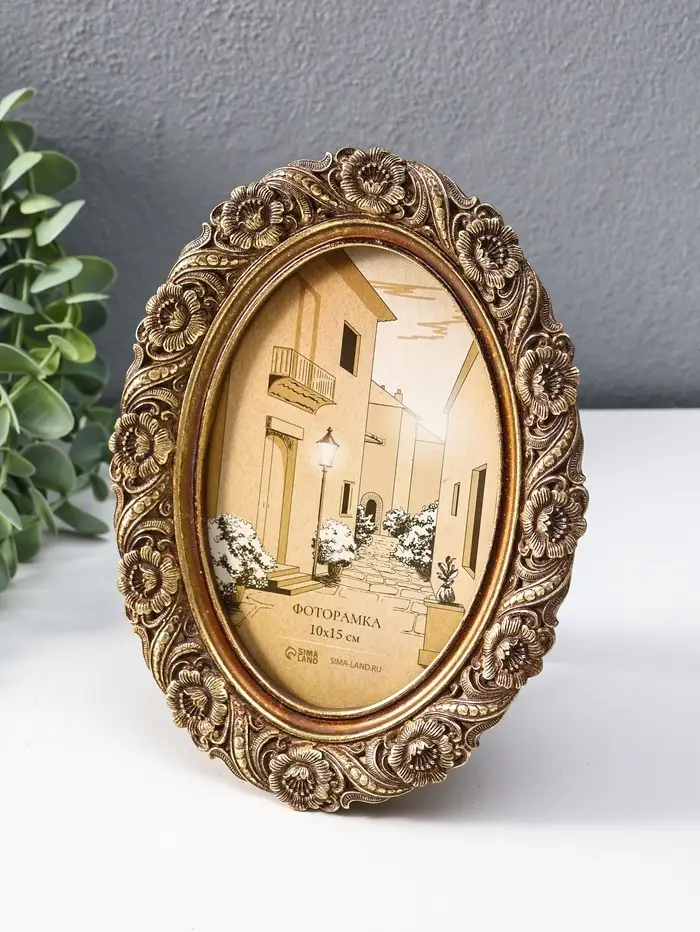 Фоторамка полистоун 10х15 см "Винтажные цветы" тёмное золото 15х1,5х20 см