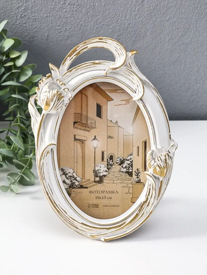 Фоторамка полистоун 10х15 см "Махровые тюльпаны" белая с золотом 14х2,5х20 см