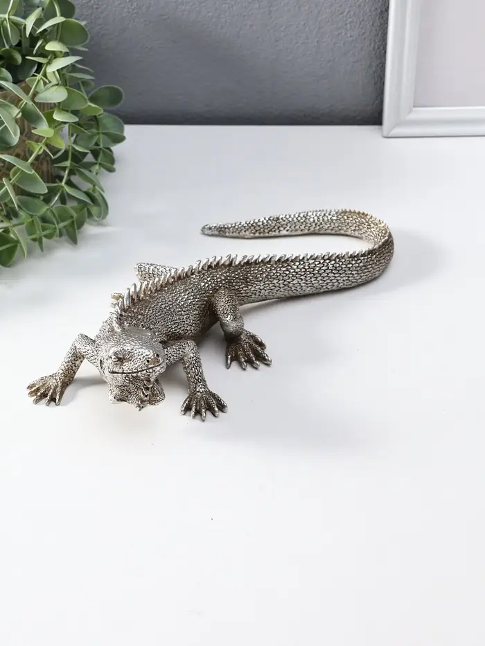 Сувенир полистоун "Игуана" чернённое серебро 25,2х12,2х7 см