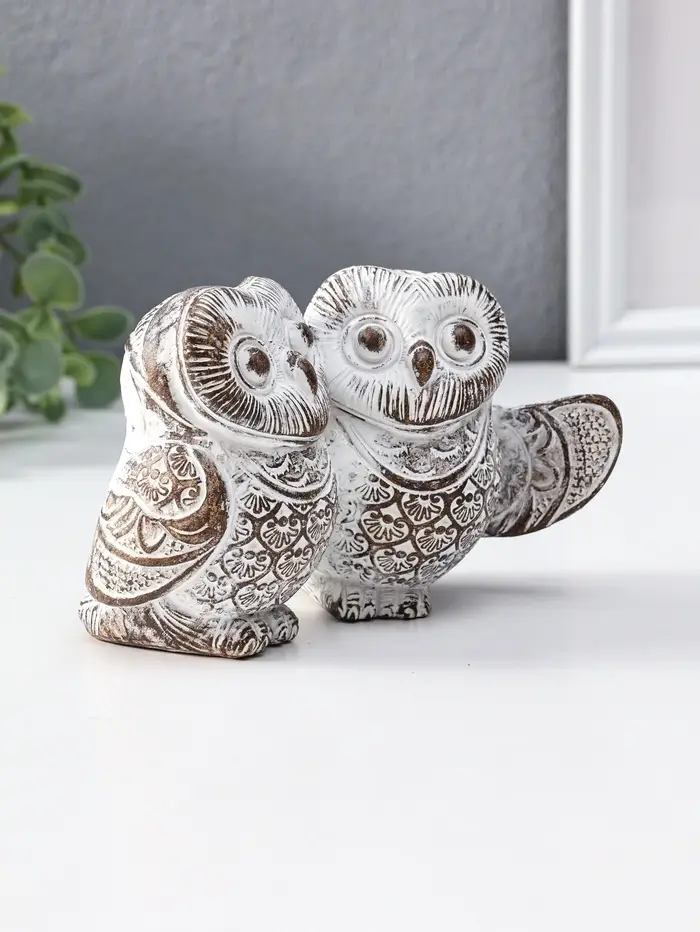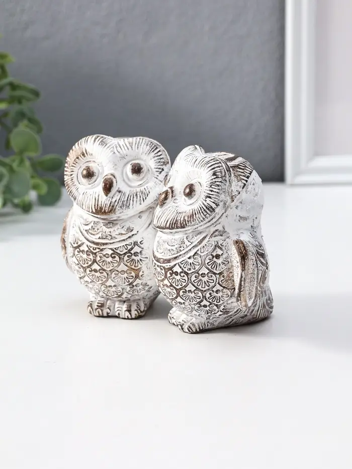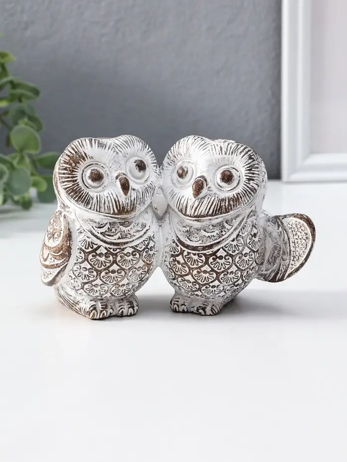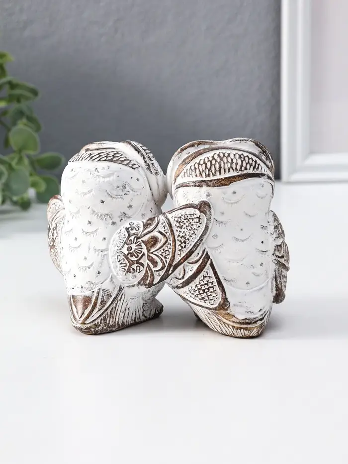 Сувенир полистоун "Совята- объятия" белый с золотой патиной 13,7х8х8,7 см