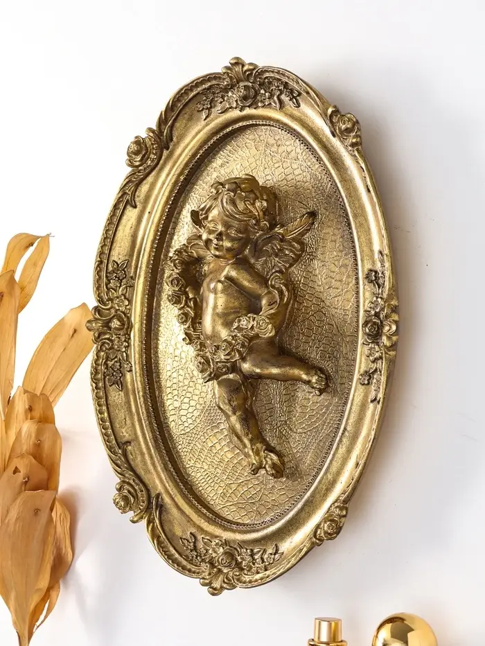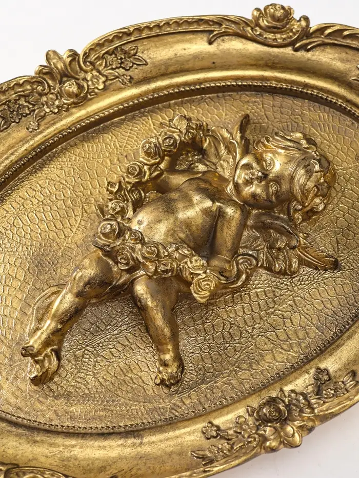 Панно интерьерное полистоун "Ангел с венком из роз" золото 21,5х4х27 см