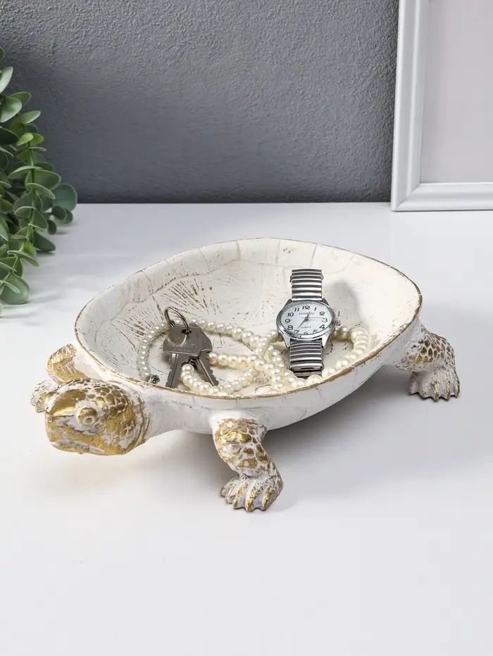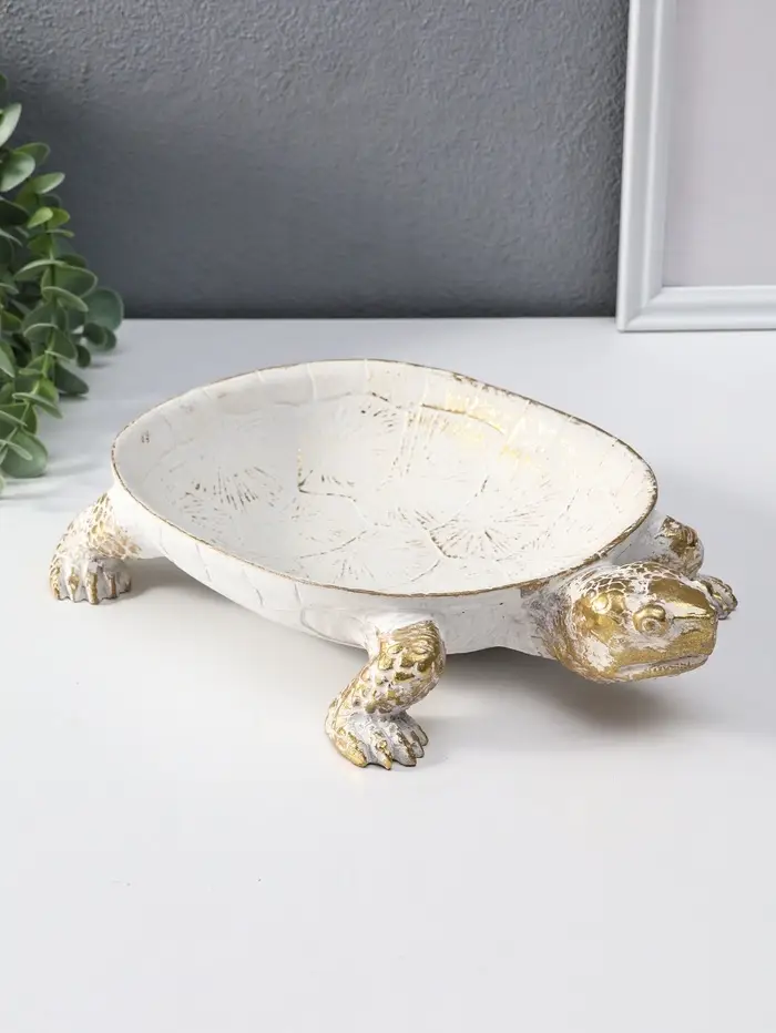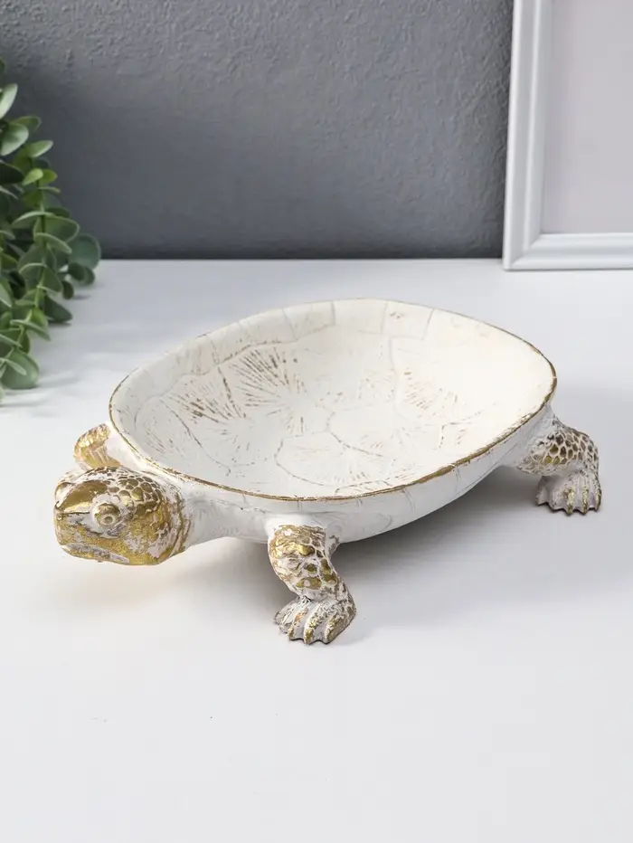 Подставка интерьерная полистоун "Черепаха" белая с золотом 28х19х5 см
