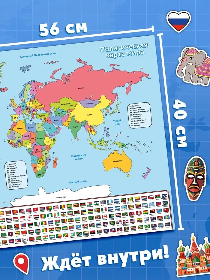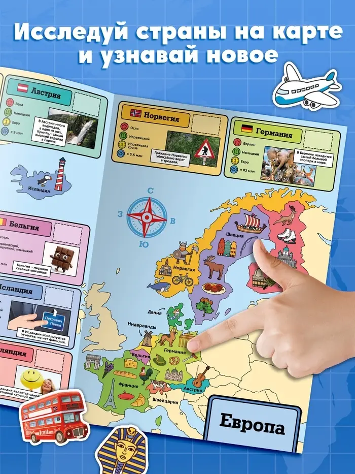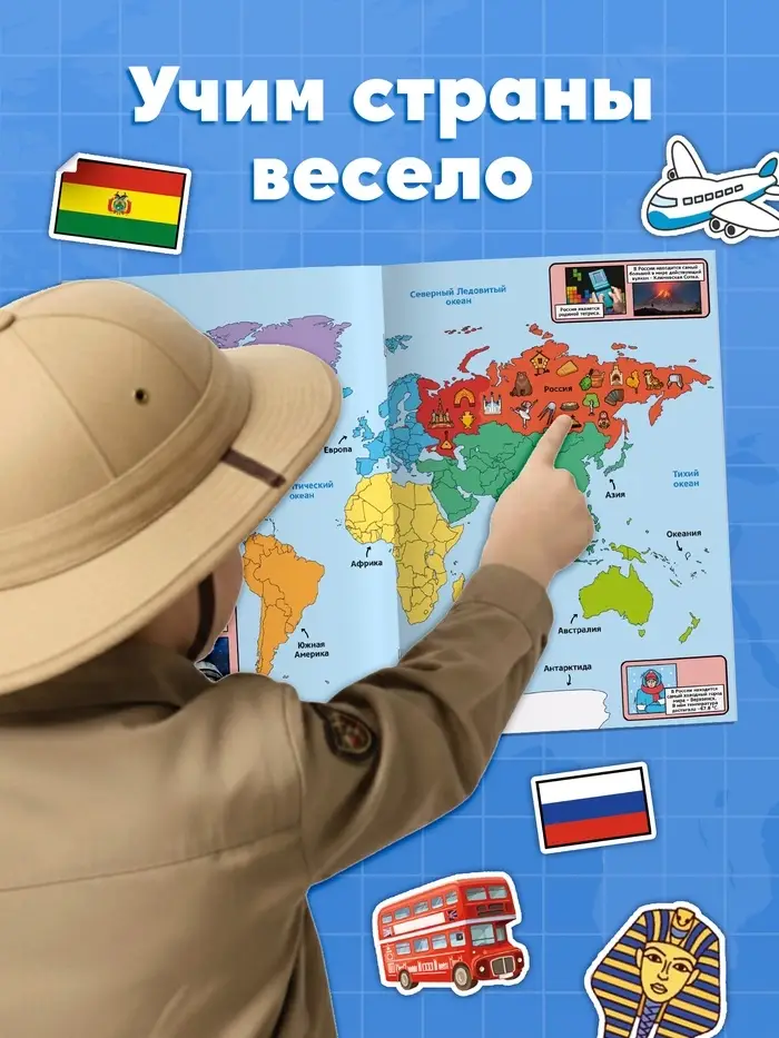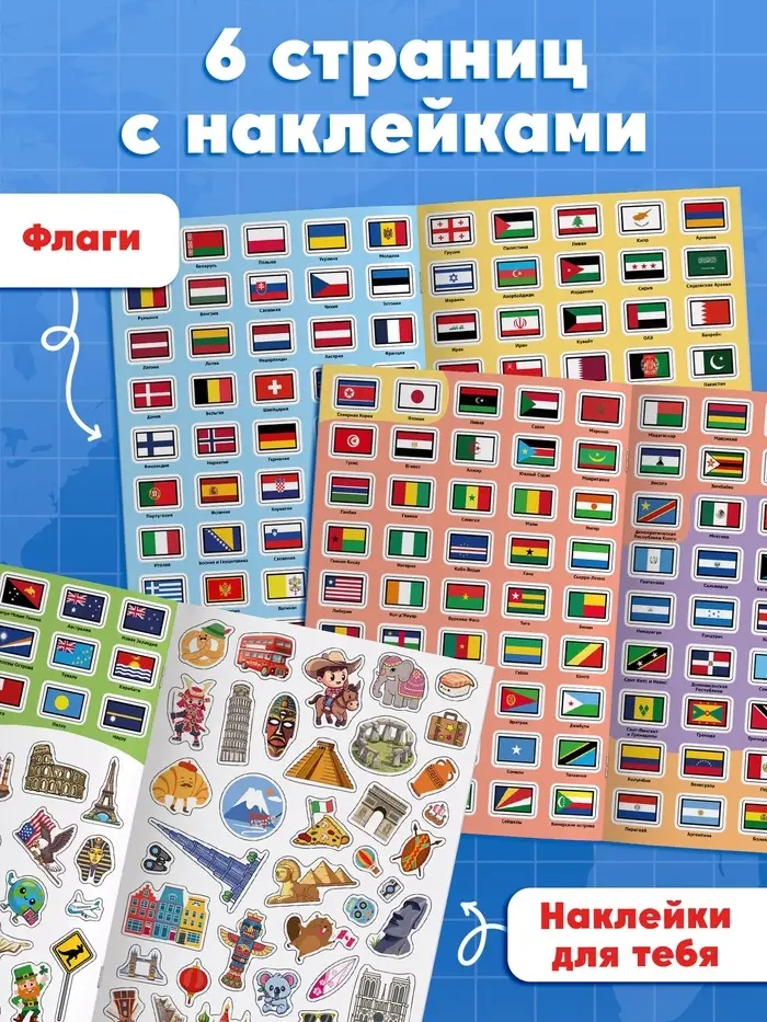 Книга «Атлас. Страны мира» с наклейками и плакатом