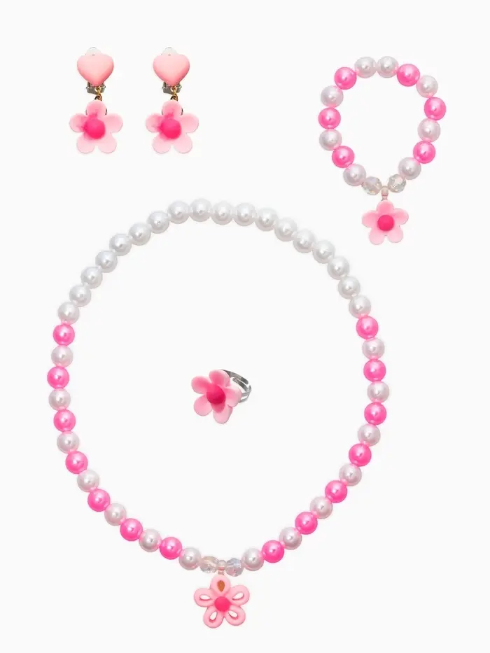 Набор детских украшений "Выбражулька" цветок, 4 предмета: клипсы, кольцо, бусы, браслет