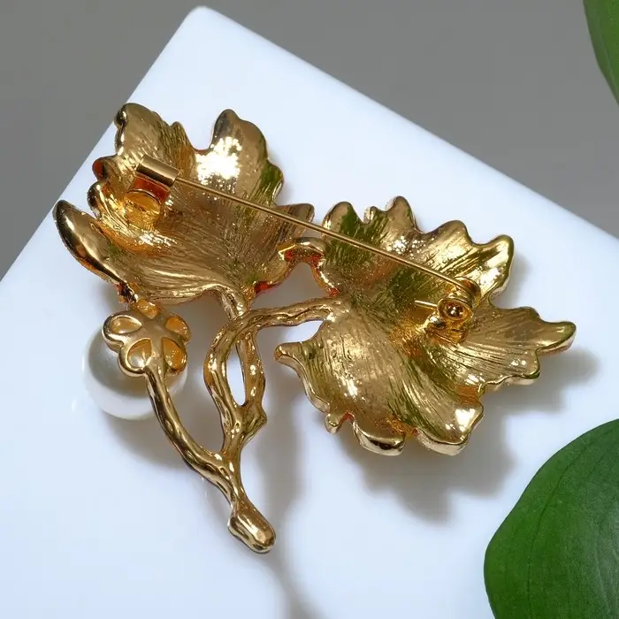 Брошь «Листья кленовые», цветная в золоте