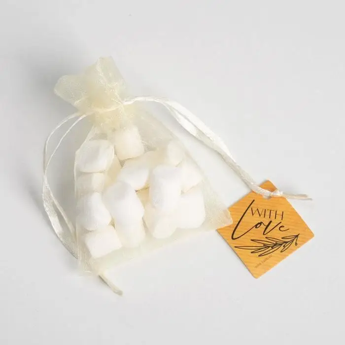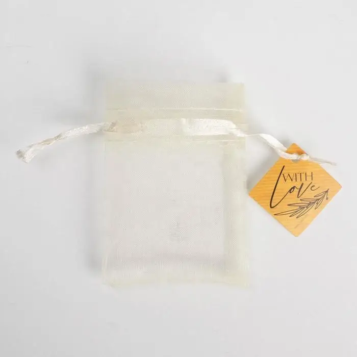 Мешочек подарочный органза бежевый «С любовью», с шильдиком, 7 х 9 см +/- 1.5 см