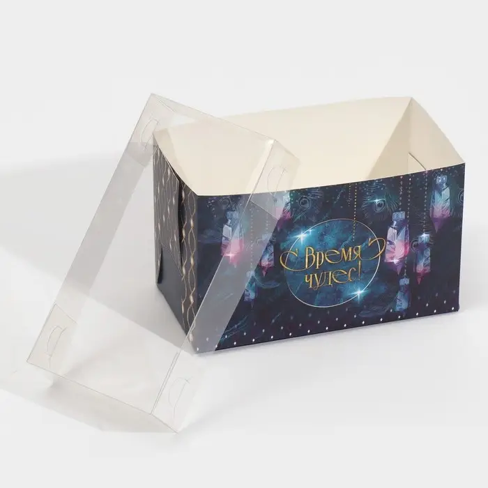 Коробка для 4 капкейка с прозрачной крышкой, "Мужской дляарок", 16 × 16 × 10 см, кондитерская упаковка