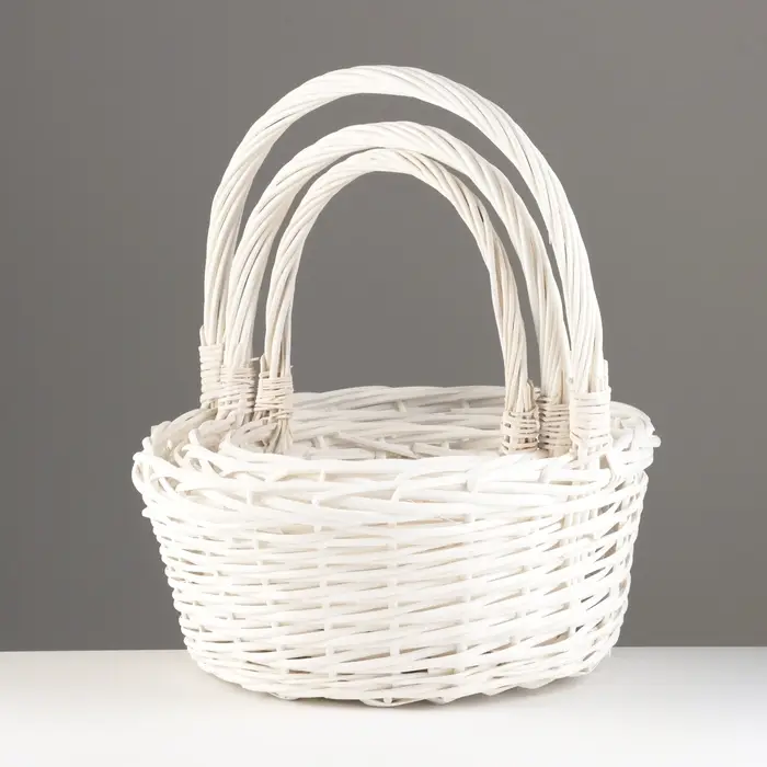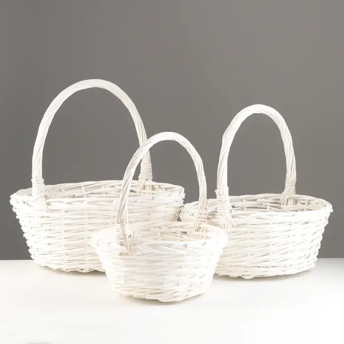Набор корзин из 3 шт, 38х38х17х 41, 32х32х15х36, 26х26х13х31, белый, ива