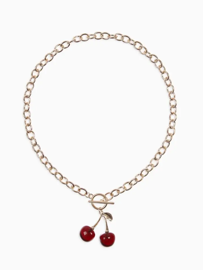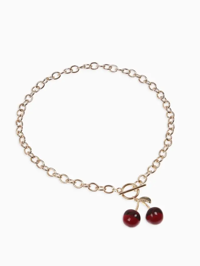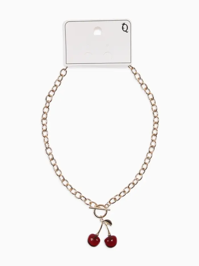 Кулон-цепь крупная "Вишня", цвет красный в золоте 40+удл