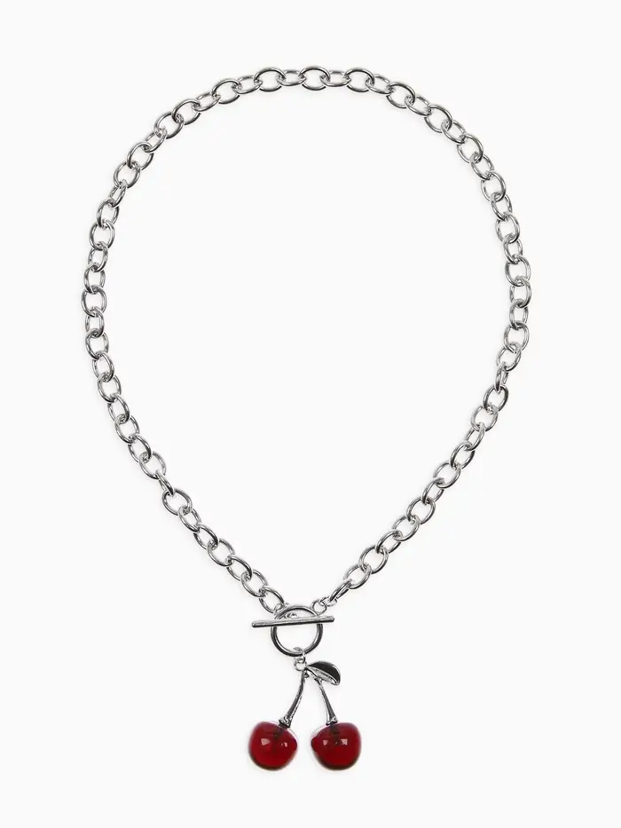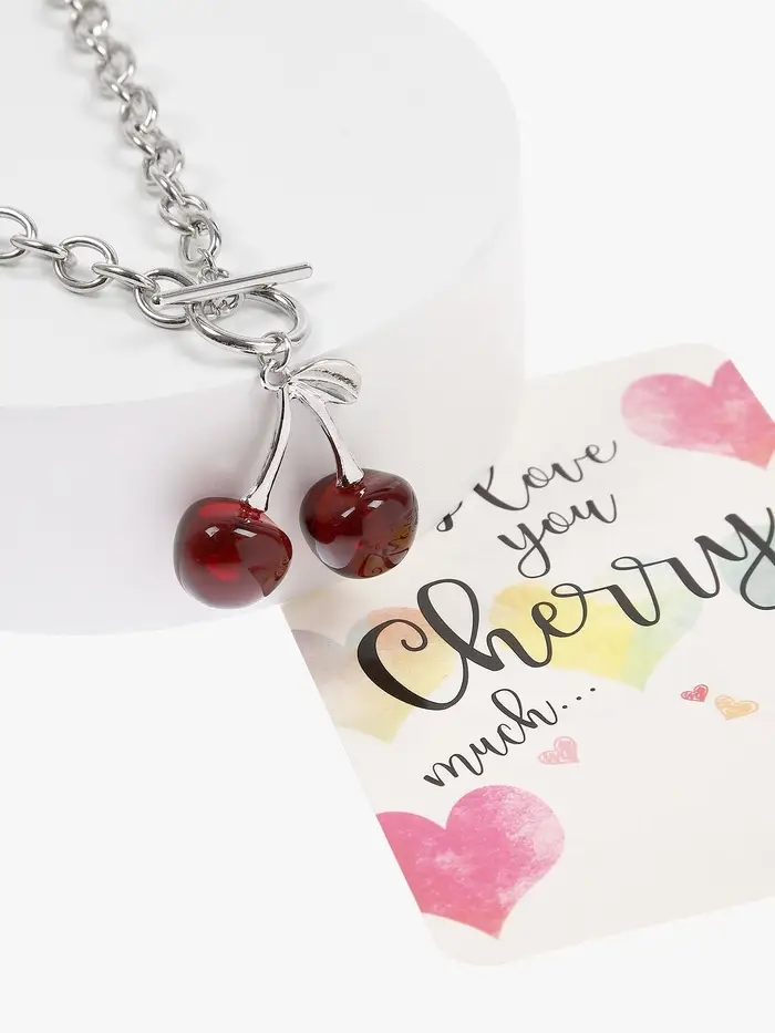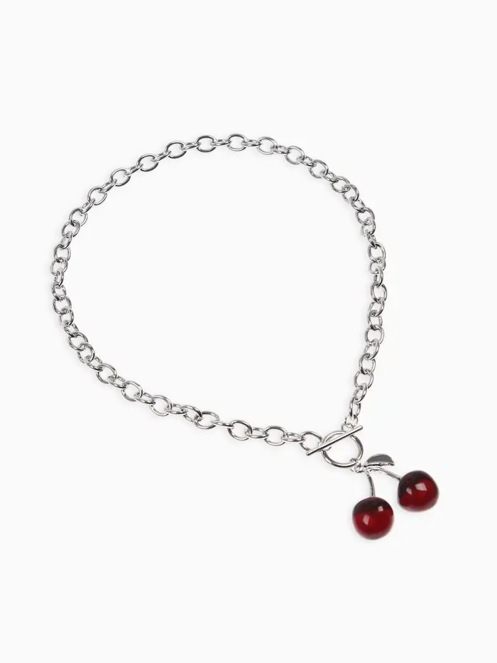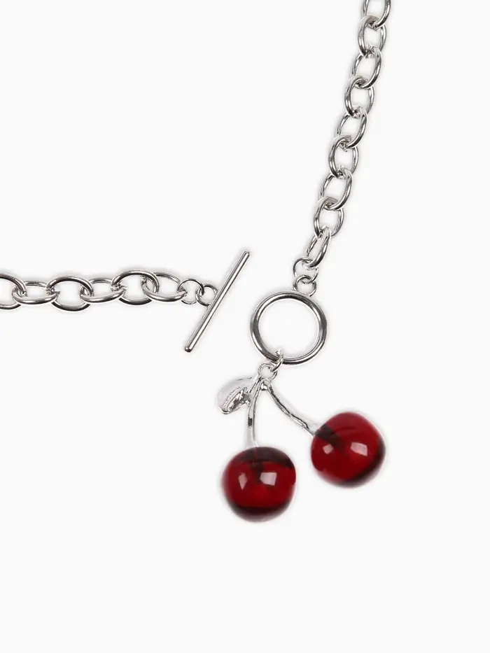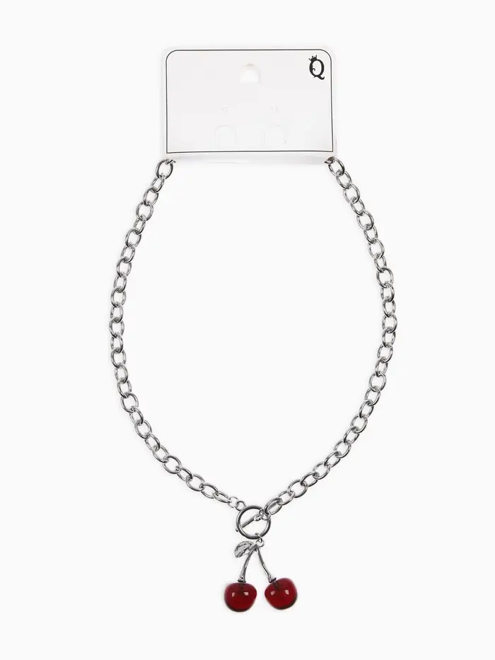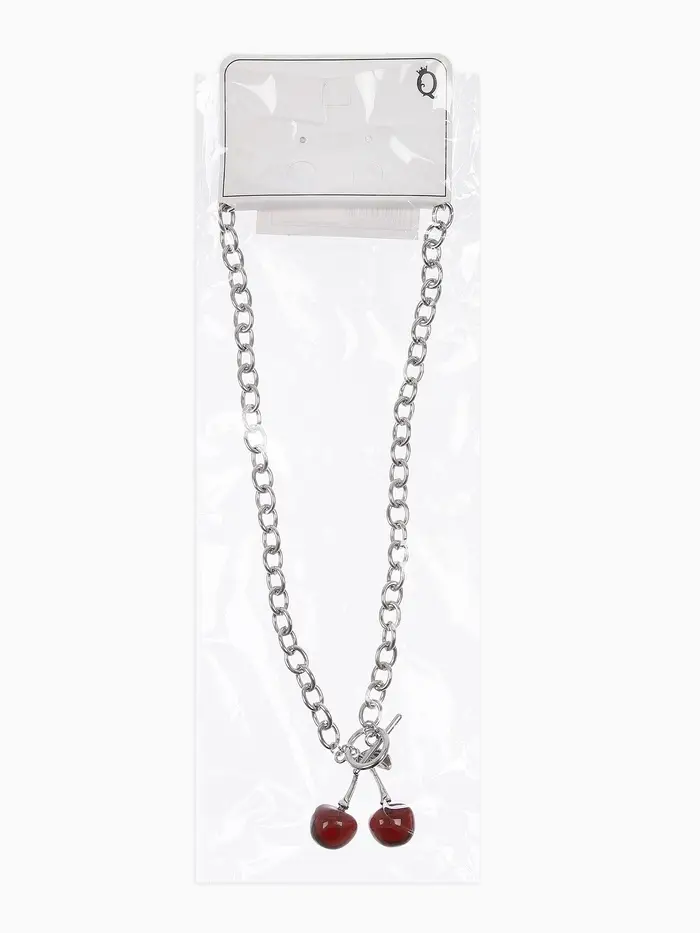 Кулон-цепь крупная "Вишня", цвет красный в серебре 40+удл