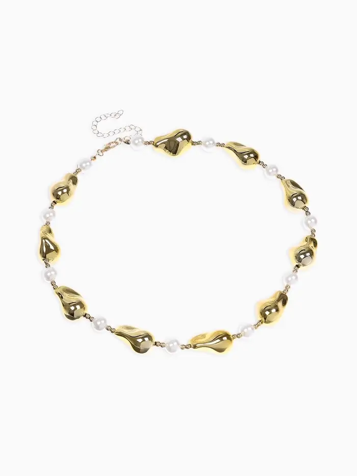 Бусы "Жемчуг Борокко", цвет белый в золоте 40+удл