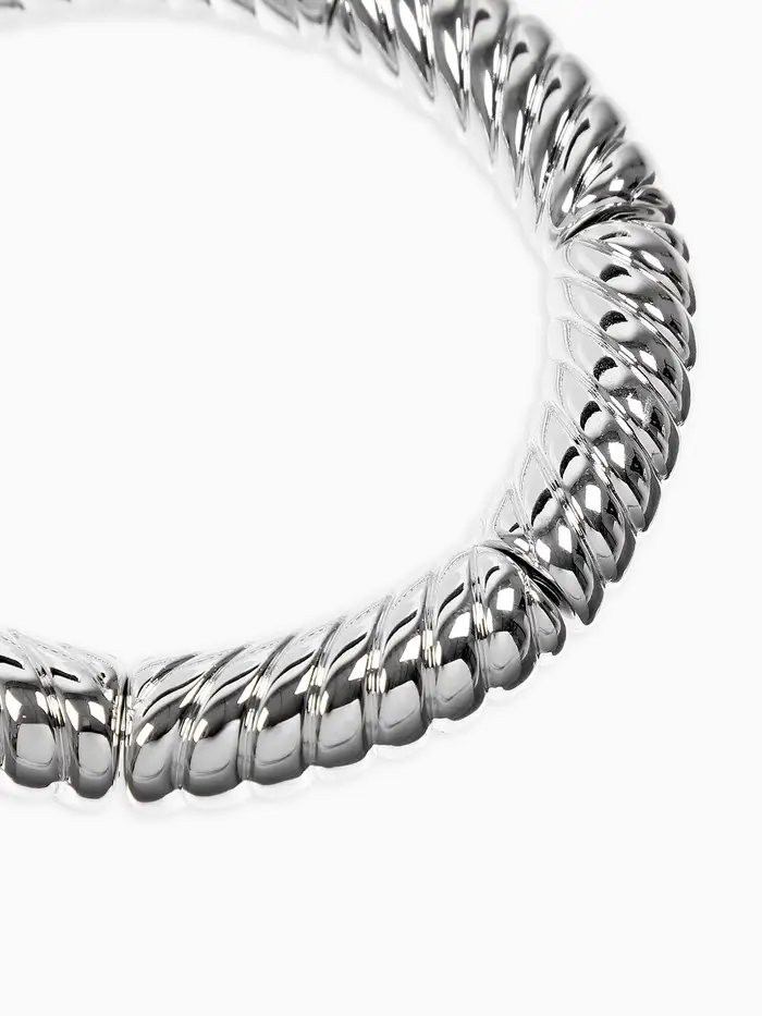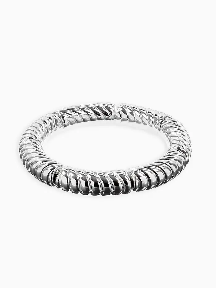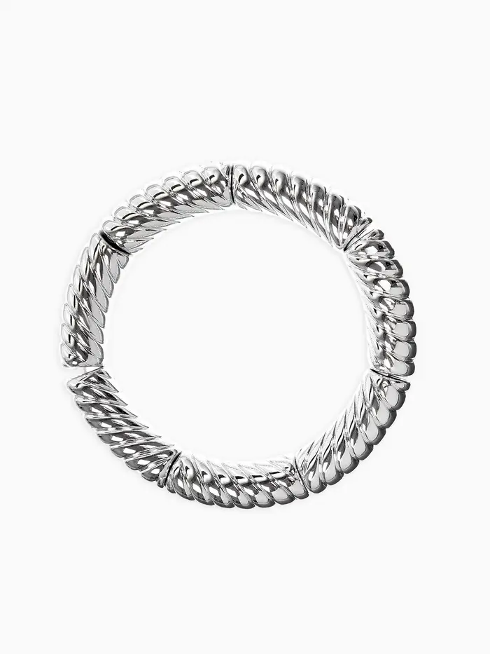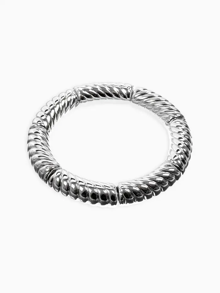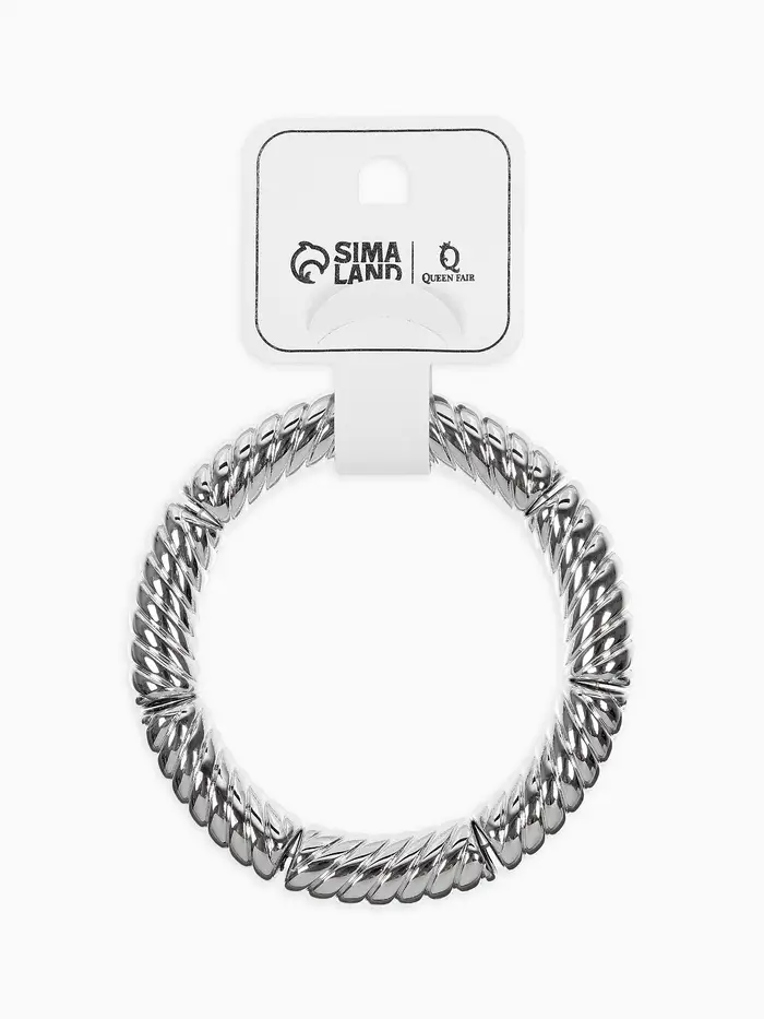Браслет пластик на резинке "Стиль" резной, цвет серебро