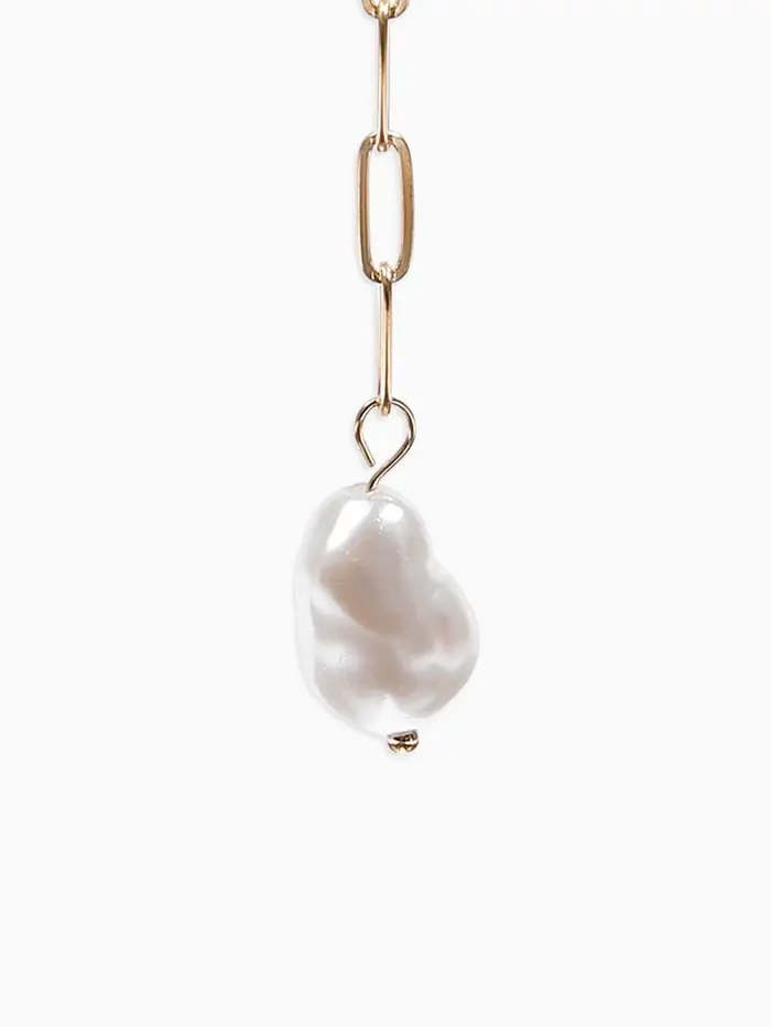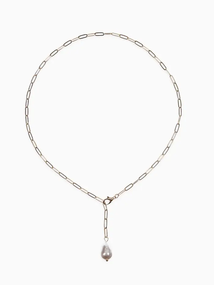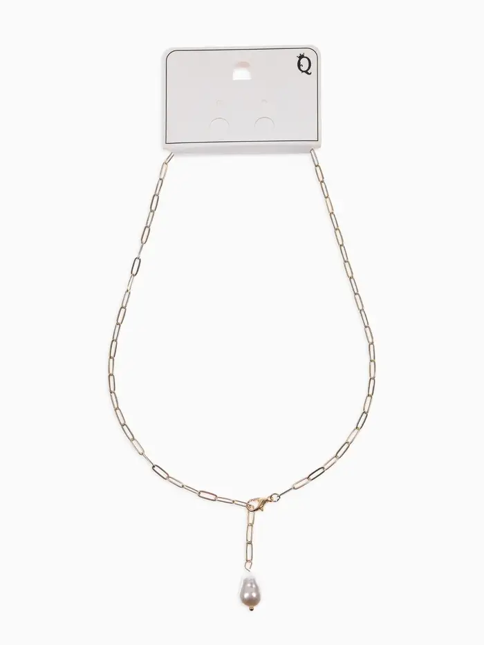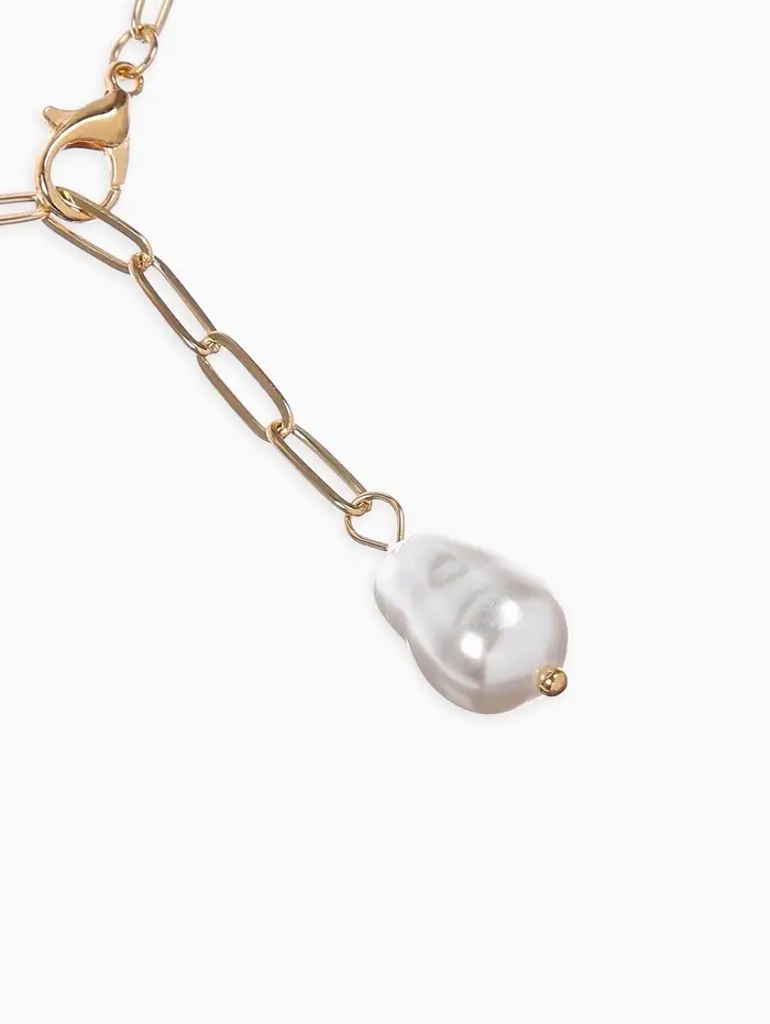 Цепь с бусиной "Жемчужина", вытянутое звено, цвет белый в золоте