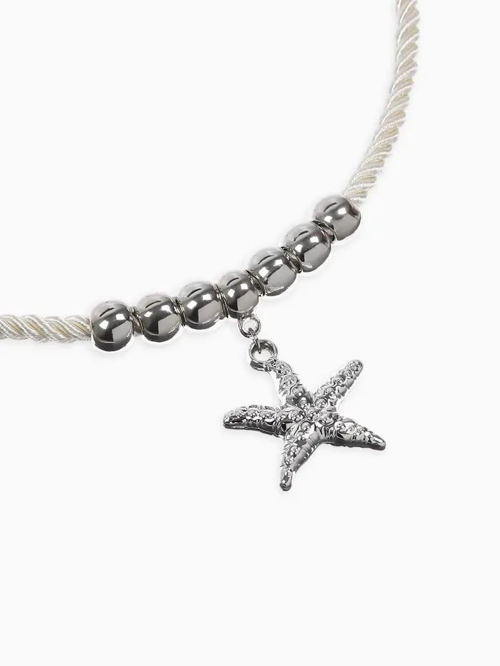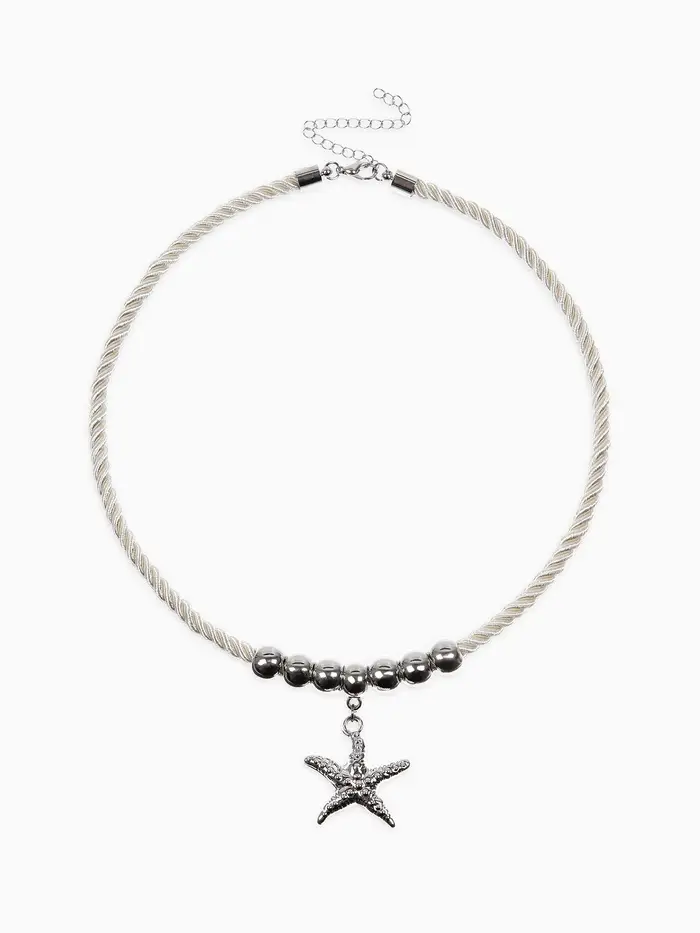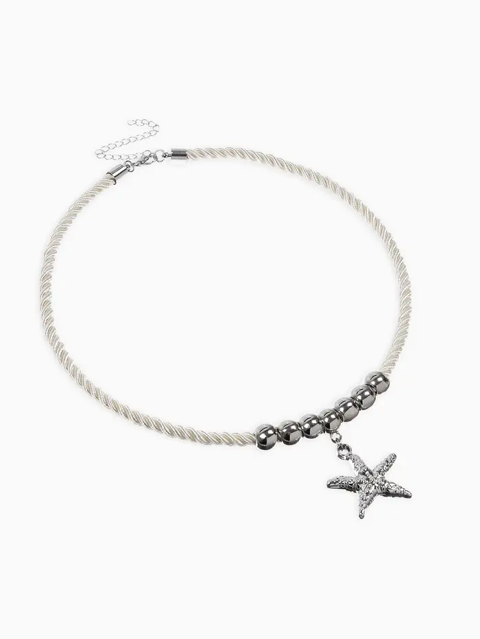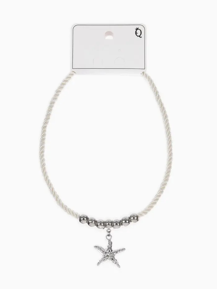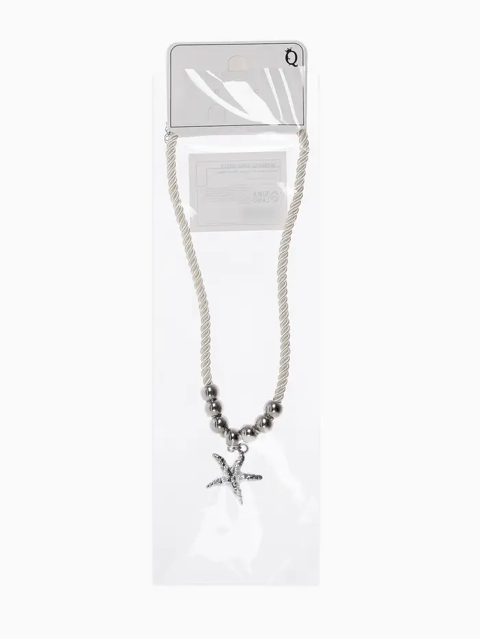Кулон на жгуте текстильном "Морская звезда", цвет бело-серебристый