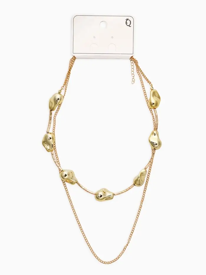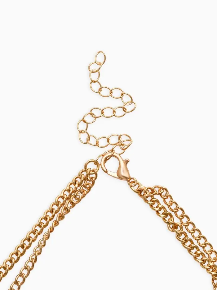 Колье "Борокко", цепь, 2 яруса, цвет золото